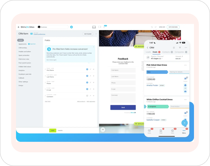 Bitrix24 offers both cloud and on-premise solutions to meet diverse business needs. The cloud version ensures remote accessibility and ease of use, while the on-premise edition provides full data control, enhanced security, and extensive customization for companies with strict data policies.